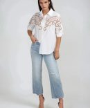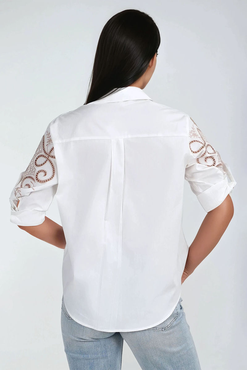 Elegant Whimsy Embroidered Blouse in White is where timeless charm meets modern flair. Featuring intricate embroidered cutout details, a classic button-down design, and a relaxed fit, this blouse is effortlessly chic. Perfect for dressing up denim or pairing with tailored bottoms, it’s versatile, breathable, and polished. Whether for workdays or weekends, this blouse adds a touch of elegance to every look with zero effort.