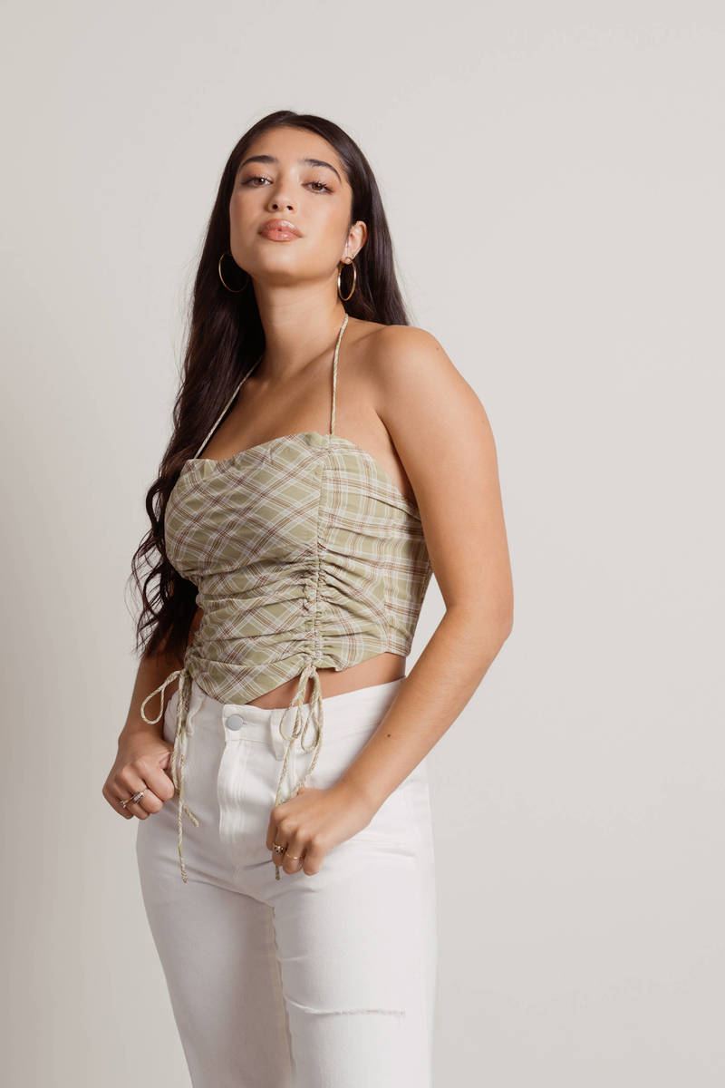 Look pretty in plaid with the Ramie Crop Top in Green! This cute halter top features a ruched body, adjustable ties, and a smocked back for a comfortable fit. Perfect for casual days, pair it with high-waisted jeans and sneakers for a relaxed, effortless vibe while running errands or hanging out with friends. Stay chic, even on your busiest days!